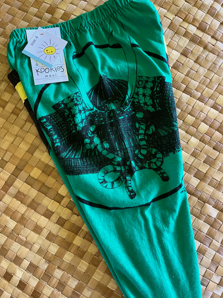Kids Size 4 "Green & Black Samurai" ʻOpihi Picker Pants