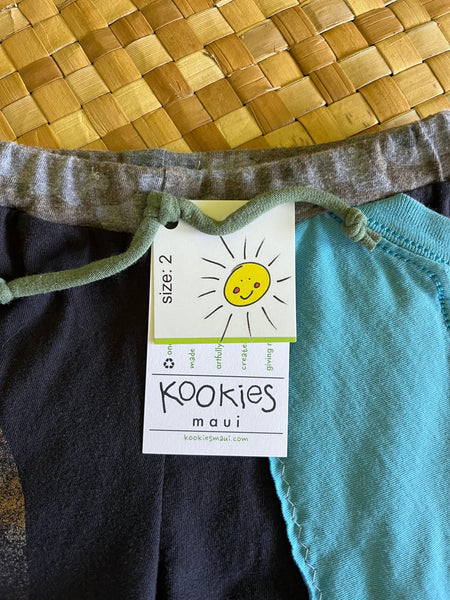 Kids Size 2 "Black & Teal Frenchie Sunset" Beach Comber Shorts