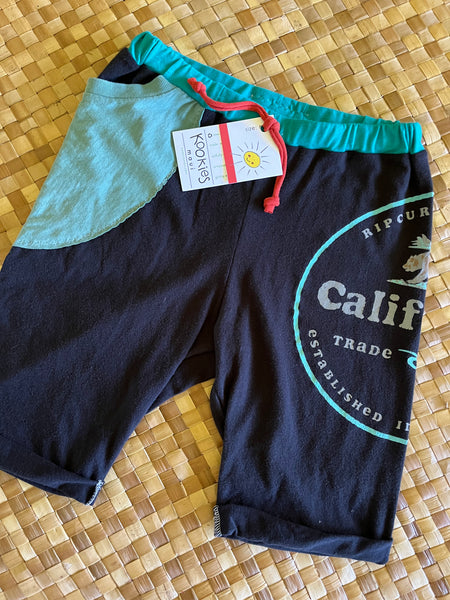 Kids Size 8 "Teal & Black California Surf" Beach Comber Shorts