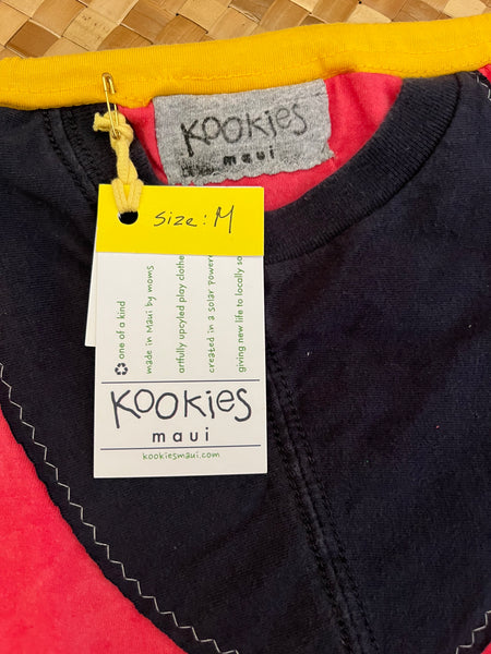 Flirty and comfy, these favorites are made entirely of upcycled t-shirts. That's it. No new material except for the thread that holds the pieces together. Drawstring waist and single back pocket. These may quickly become your favorite casual cover-up.
